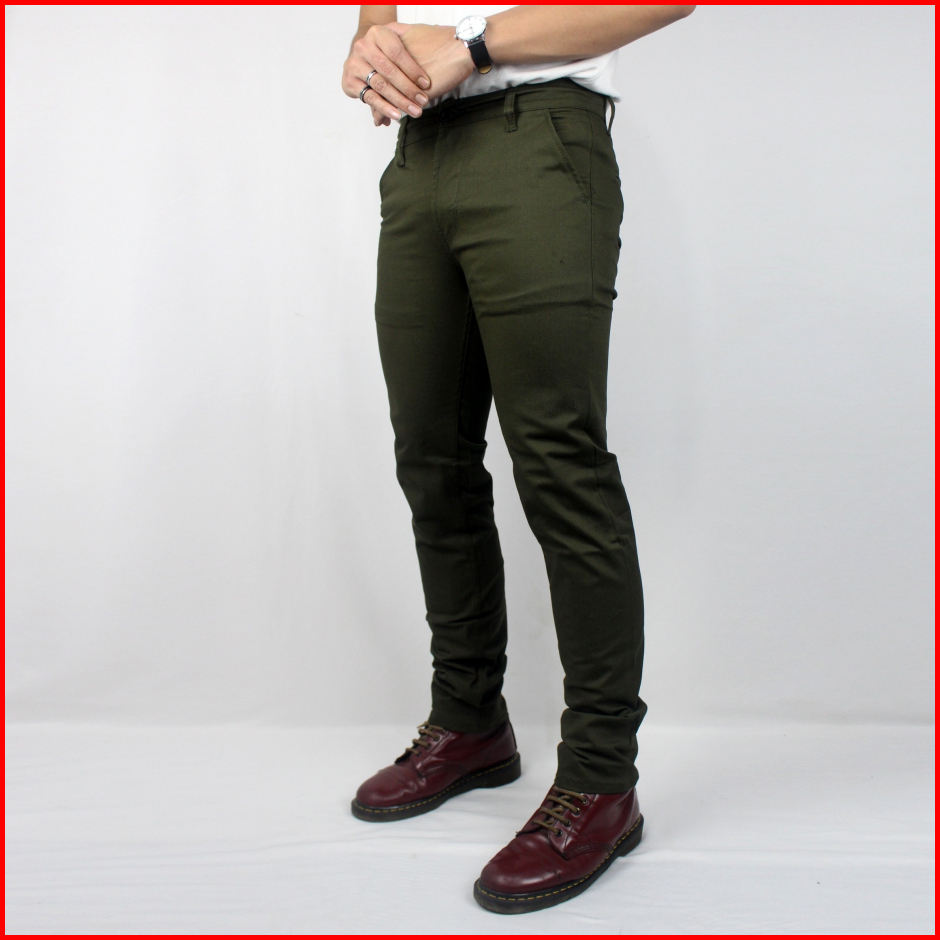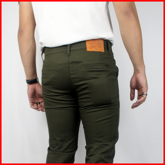 Two One - Celana Chinos Panjang Pria Slim Fit Hijau Army