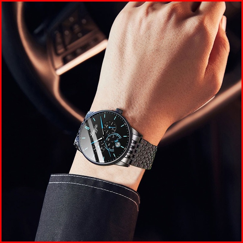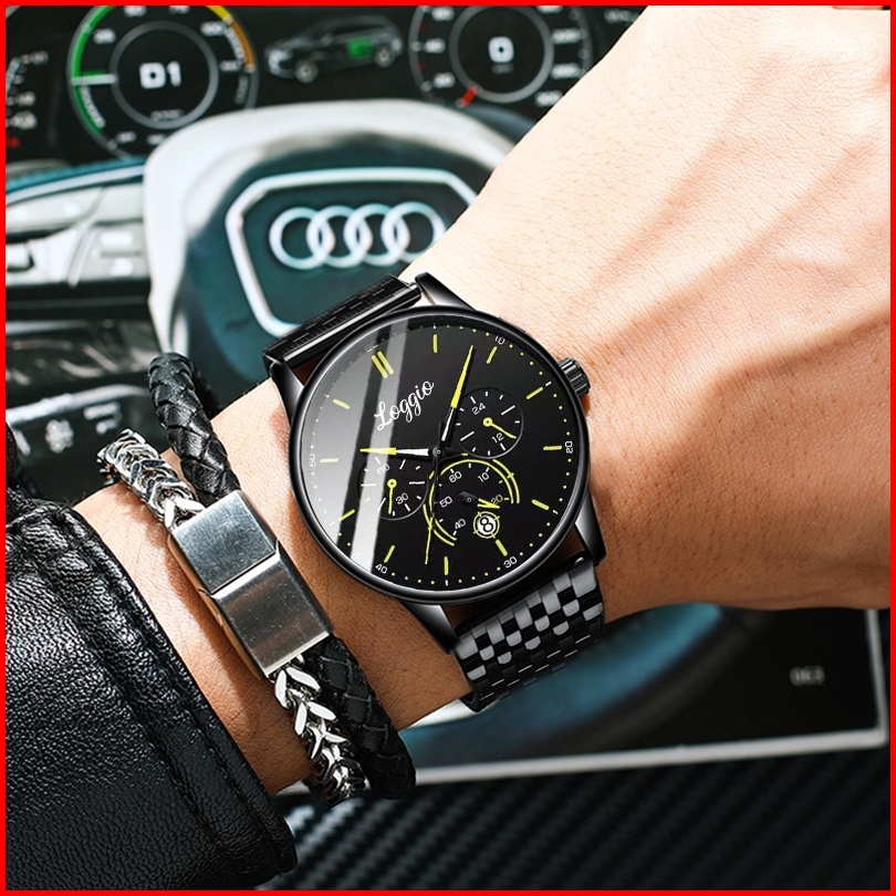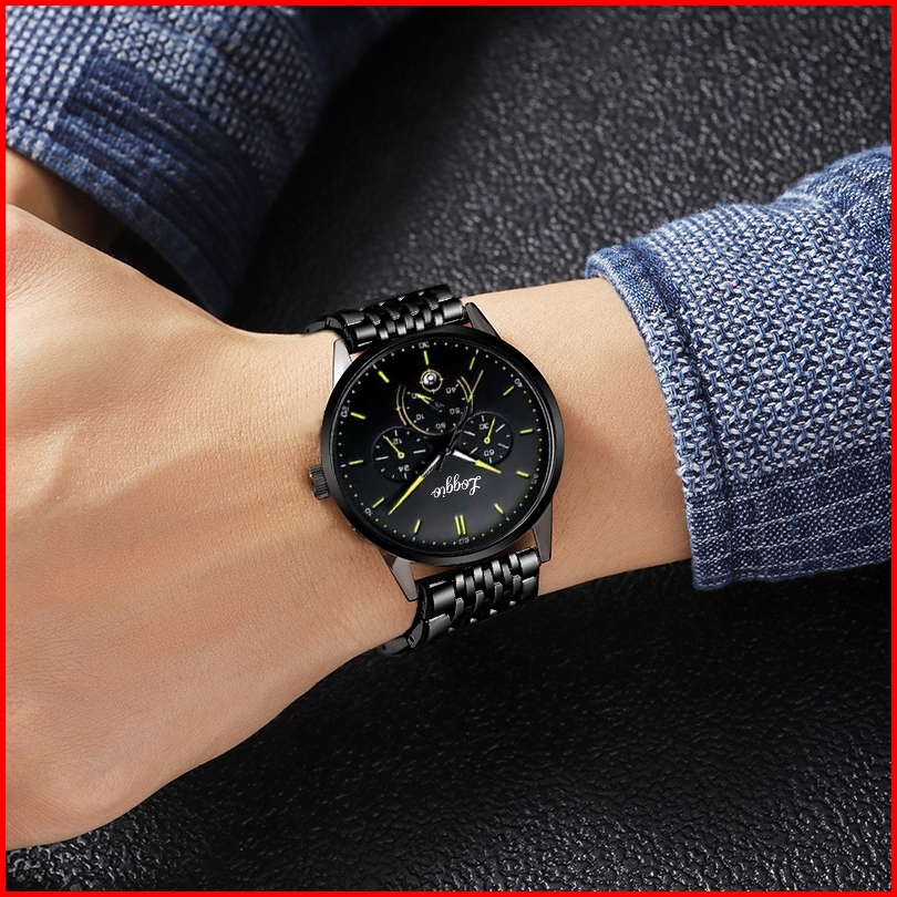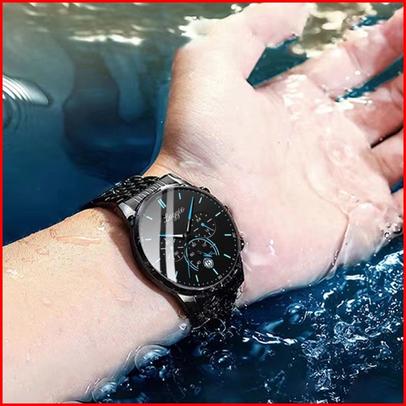 Loggio Jam Tangan Cowok Stainless Steel Santai Mode Jam Tangan Pria Original Display Kuarsa Cahaya Malam Anti Air Tali