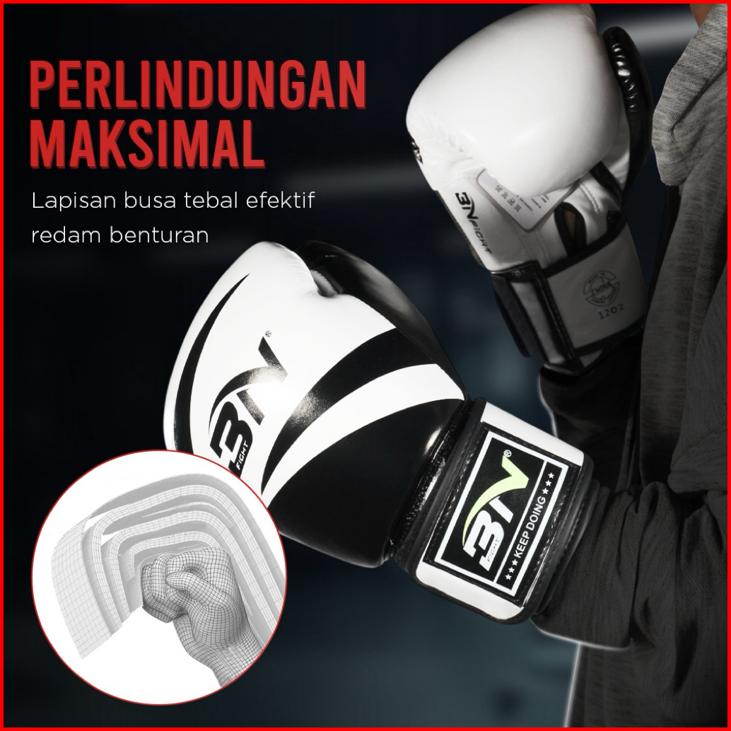 Bn Fight Sarung Tangan Tinju Boxing Muay Thai Leather Glove Breathable 10 12 Oz