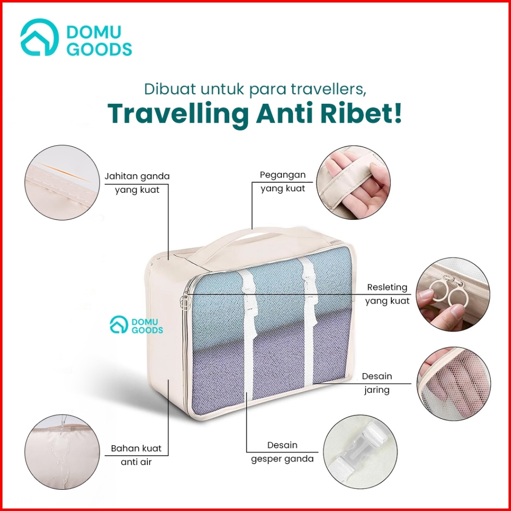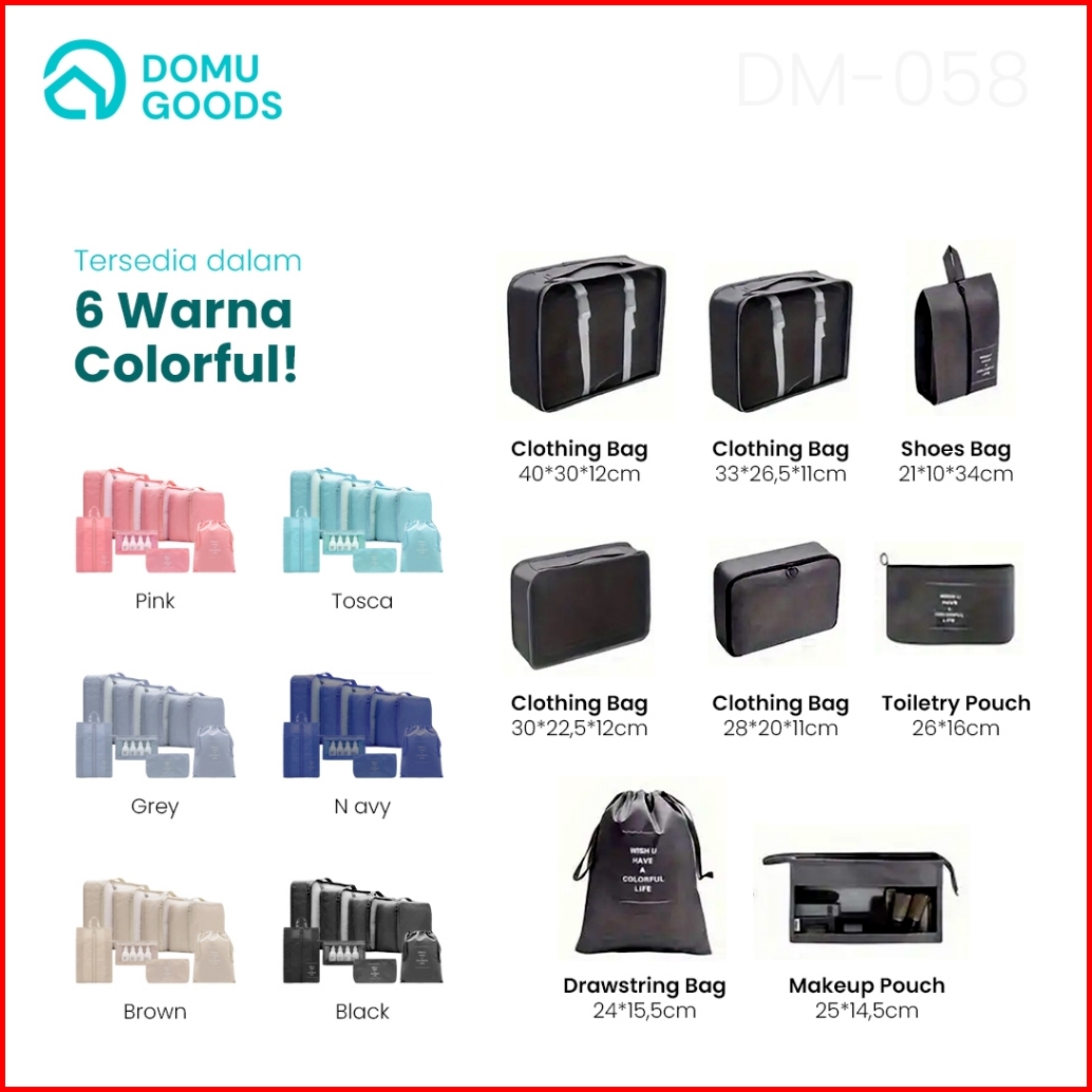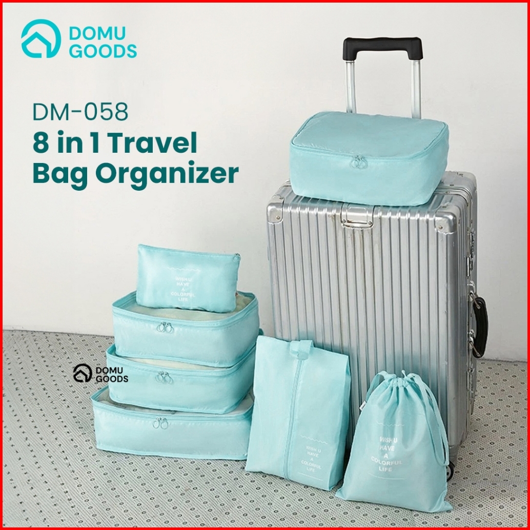 Domu 8in1 Travel Organizer Bag Storage Bag Set Travel Tas Dalam Koper Tas Penyimpanan Pakaian Set Kantong Bagasi Penyimp