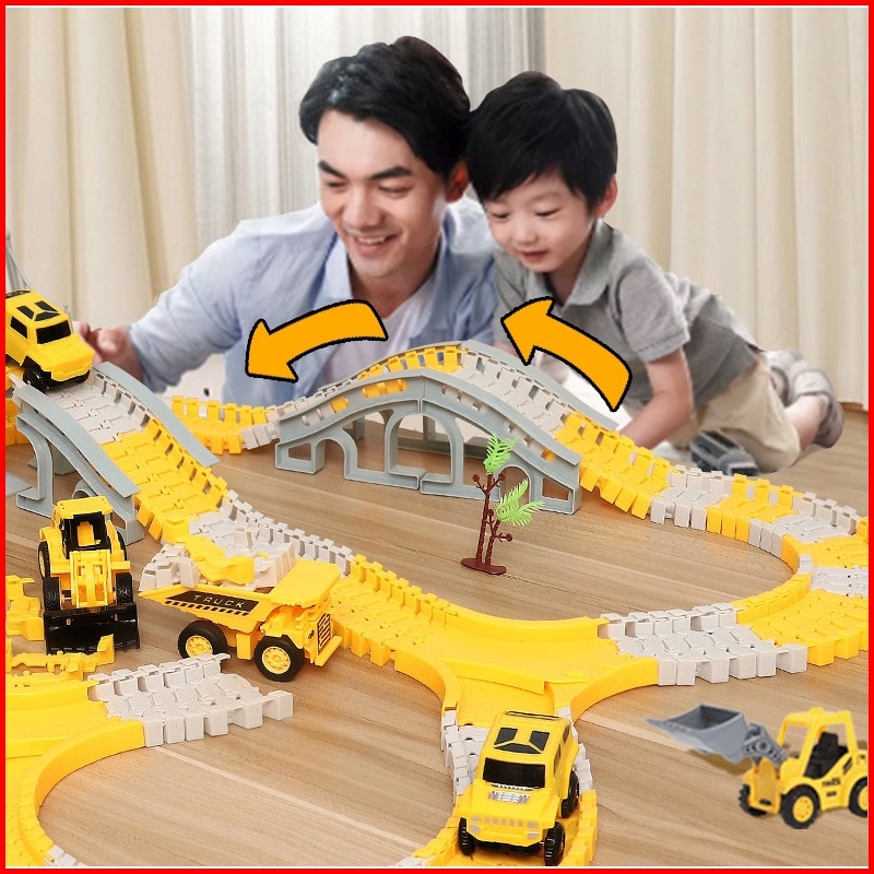 Lele Toys Mainan Mobil Rel 2 Mobil Anak Diy Rakitan Kereta Dirakit Jalur Kereta Api