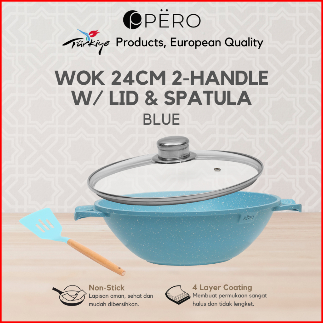 Kak Lila Pero Wok 24cm Biogranite 2 Handle Glass Lid With Spatula Wajan Biogranite Anti Lengket Tutup Kaca Dengan Spatul