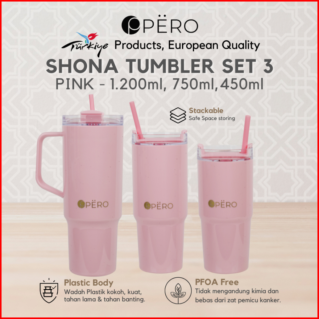 Pero Shona Tumbler Set Of 3 With Handle And Straw Plastic Bottle 1200ml 750ml 450ml Botol Minum Tumbler Plastik Set 3 De