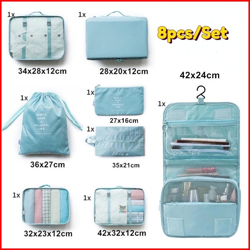 8pcs Travel Bag Organizer Storage Bag Organizer Tas Koper Polos Tas Penyimpanan Travel