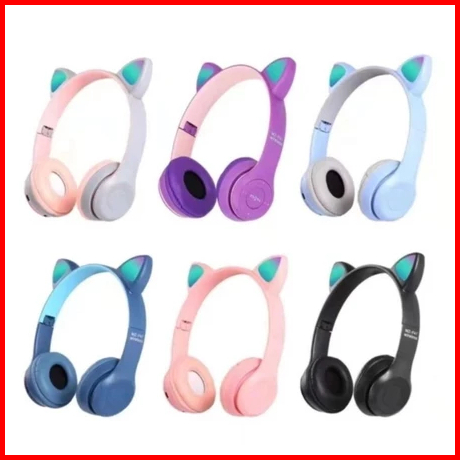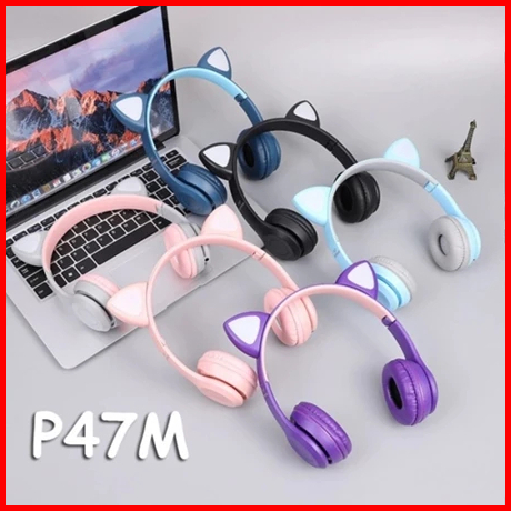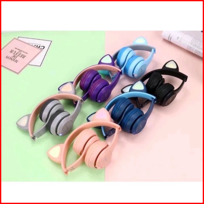 Headset Bluetooth Wireless Headphone Gaming Led Model Kucing Mz47
