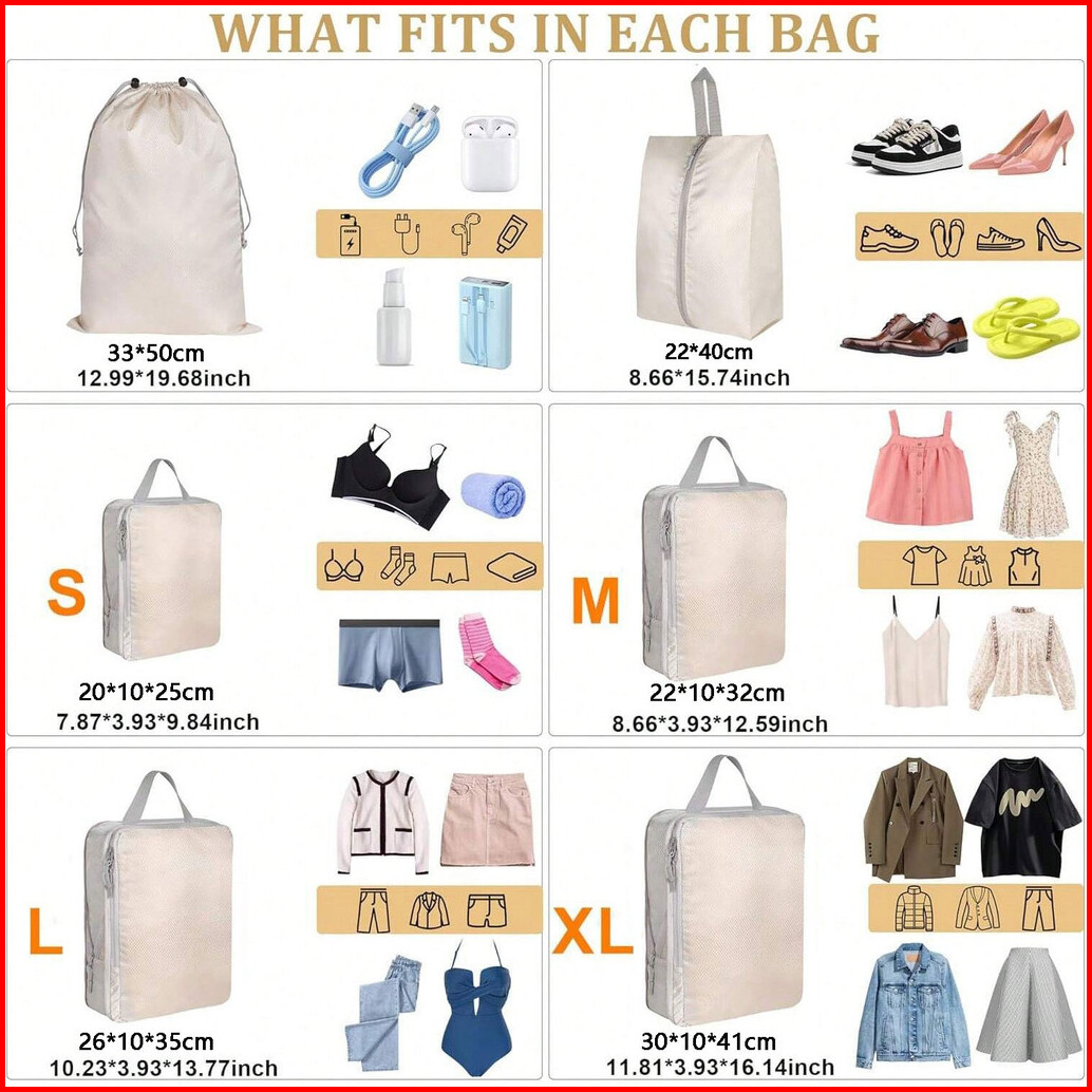 5pcs Tas Travel Bag Tas Penyimpanan Perjalanan Storage Bagtas Travel Organizer Set Kantong Bagasi Portabel Suitcase Orga