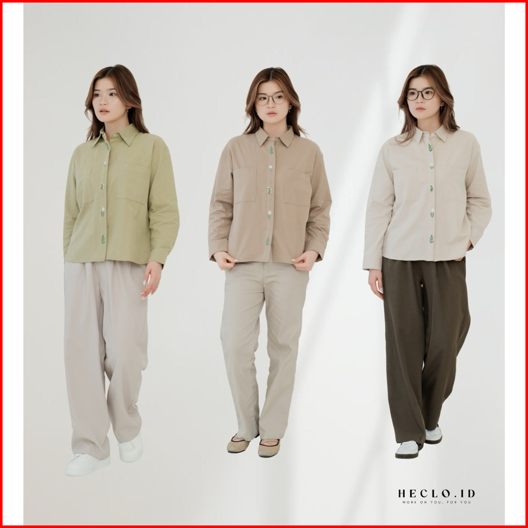 Heclo.id - Flora Embroidery Shirt Atasan Wanita Kemeja Wanita