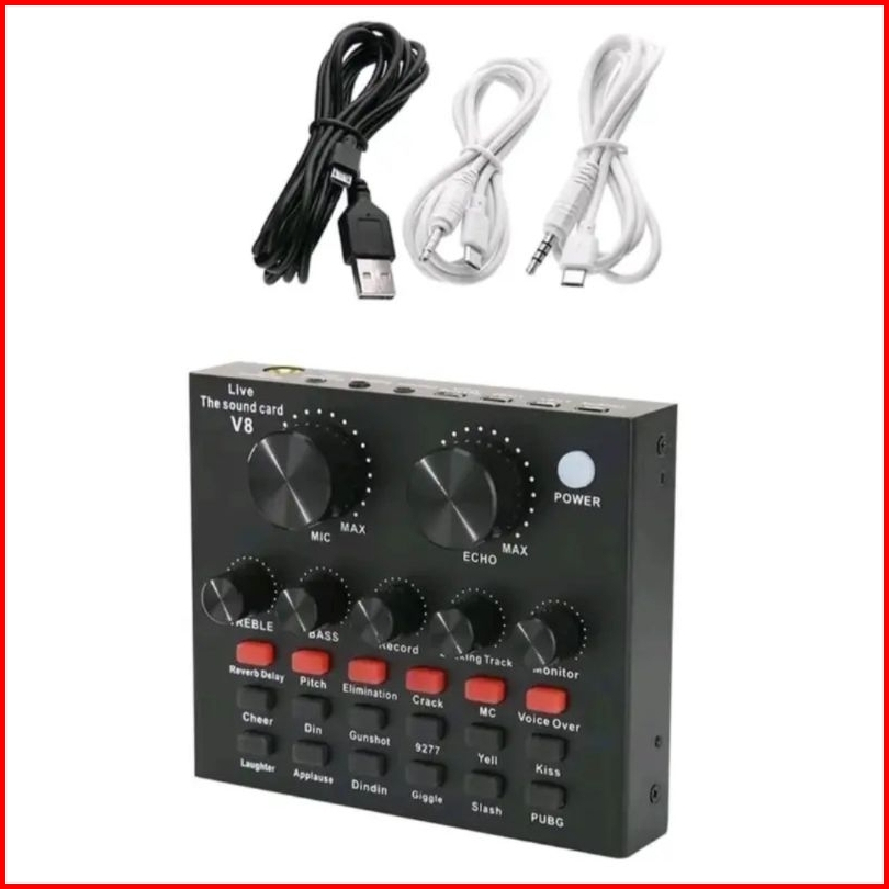 Free Gift 1 Pcs Sound Card V8 Mic Clipon Bando Tripod Hd25 1pcs Kabel Data Aux Free Kabel Data Micro Streaming Music Rec