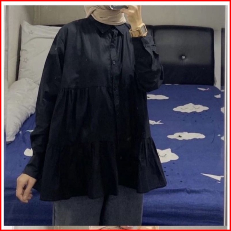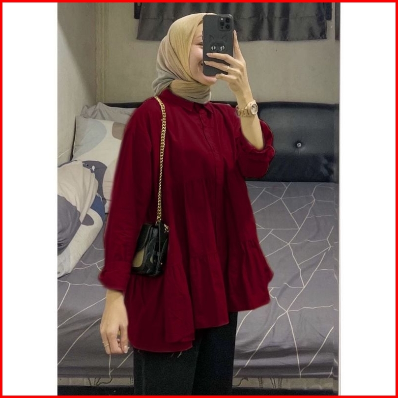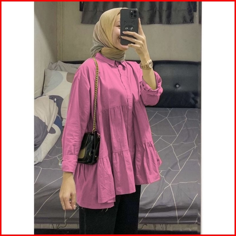 Zafia Id Dita Top Kemeja Ruffel Susun Atasan Wanita Rayon Over Size