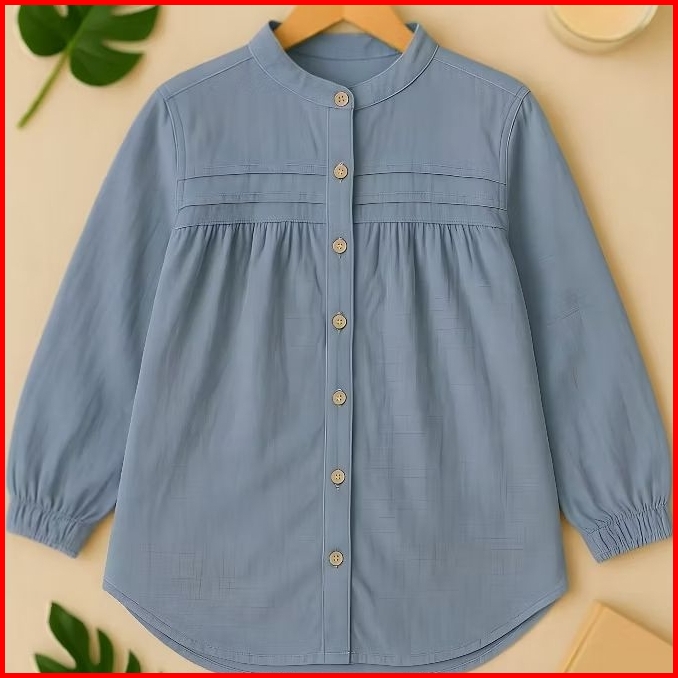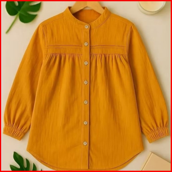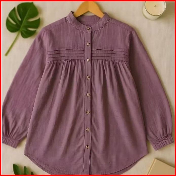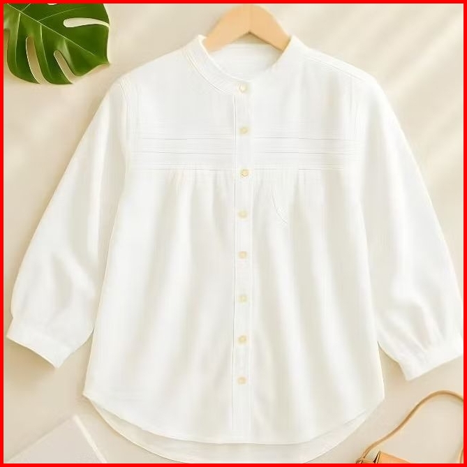 Zeva Kemeja Wanita Korean Ruffle Lengan Panjang Blouse Rayon Pollo Linen Atasan Ukuran Jumbo