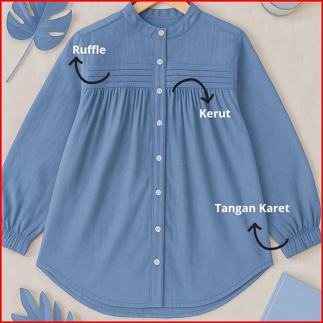 Laura Blouse Korea Ruffle Atasan Kemeja Putih Wanita Bahan Polo Linen