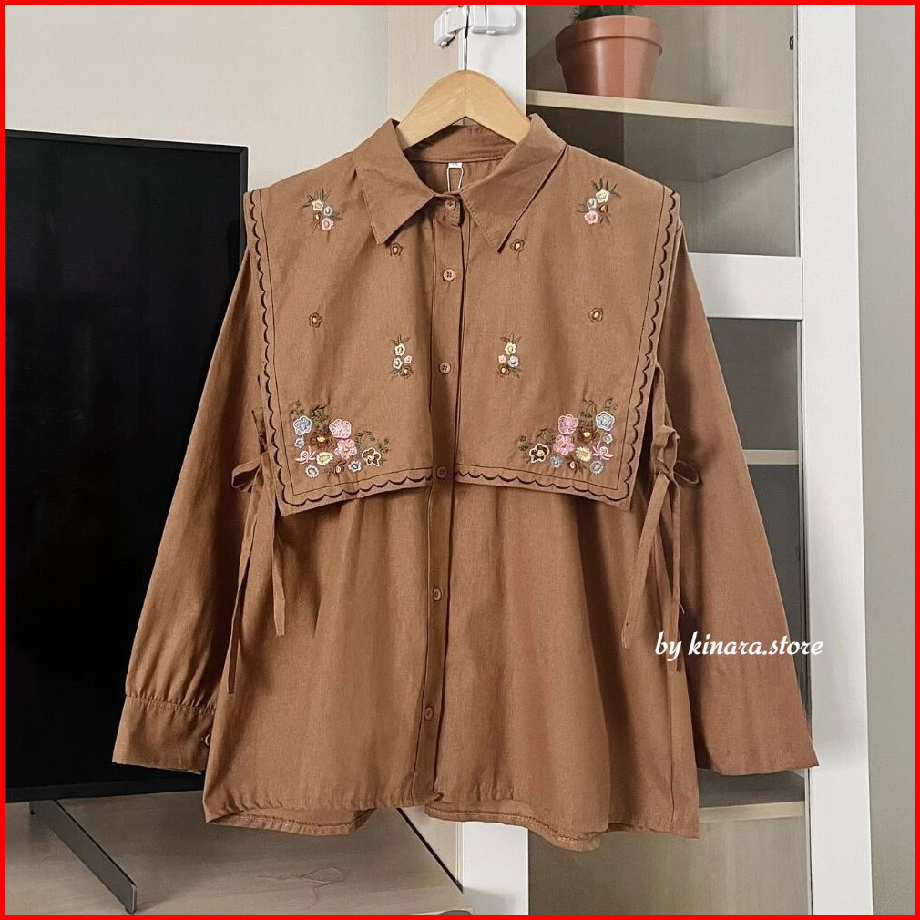Narika Shirt - Kemeja Bordir Bahan Linen - Ukuran S M L Xl Xxl Xxxl 5l - Kemeja Jumbo - Atasan Wanita Jumbo - Kemeja Wan
