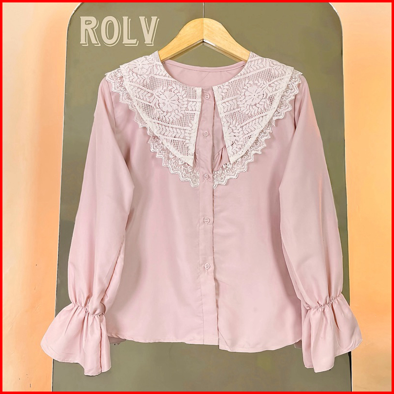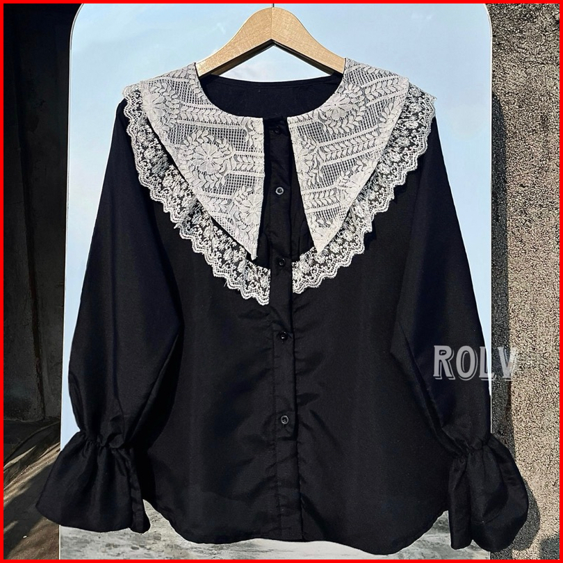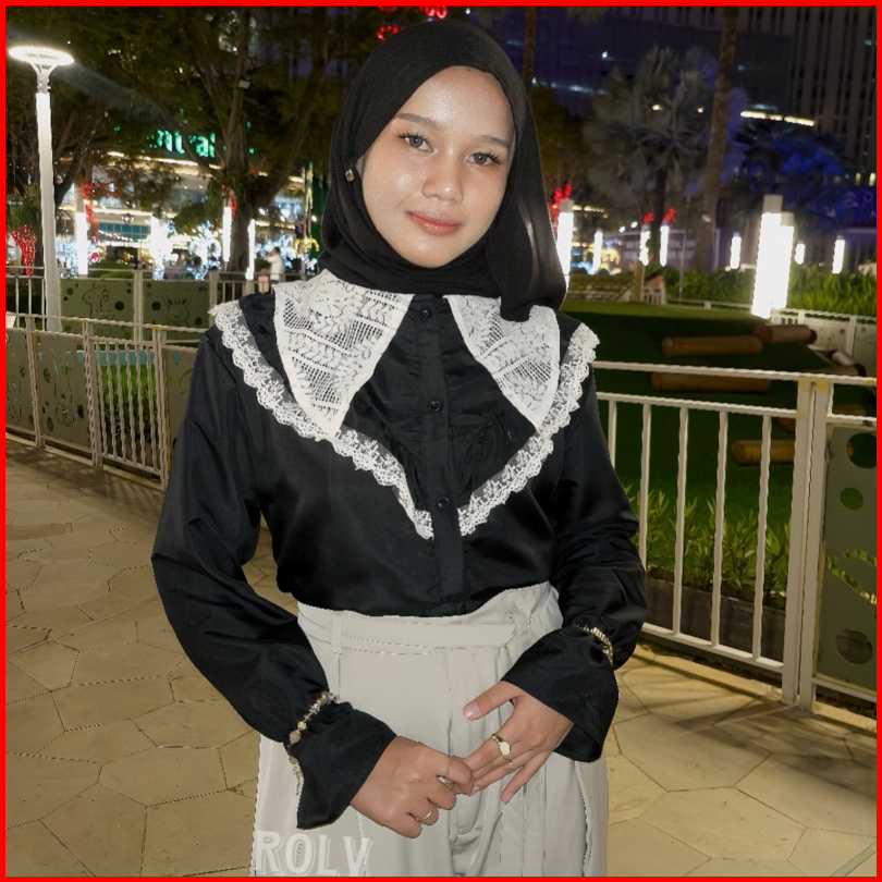 Yasmin Blouse Ruffle Atasan Kemeja Renda Katun Lengan Panjang Wanita