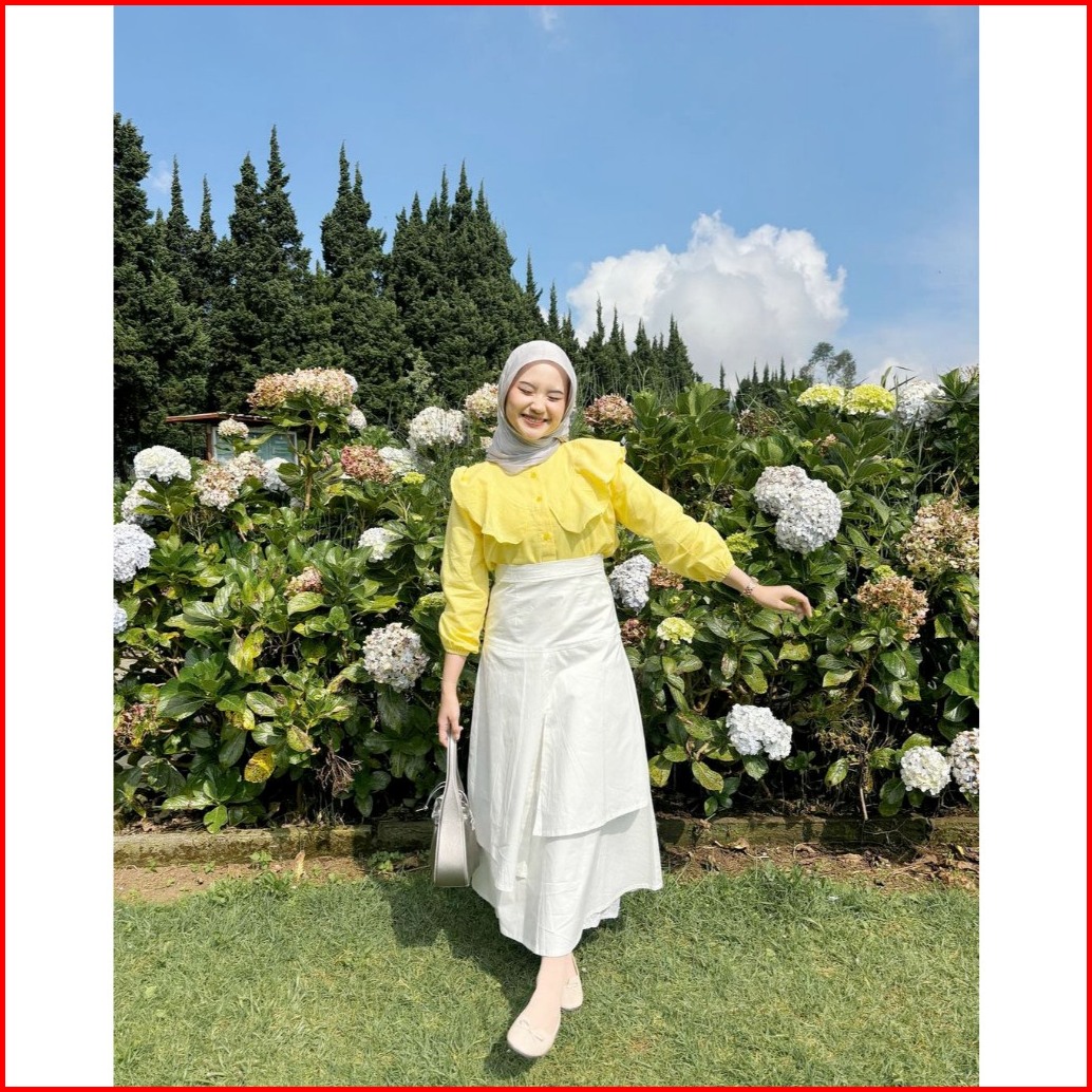 Alana Blouse Blouse Ruffle Atasan Formal Casual Yellow Pastel Top