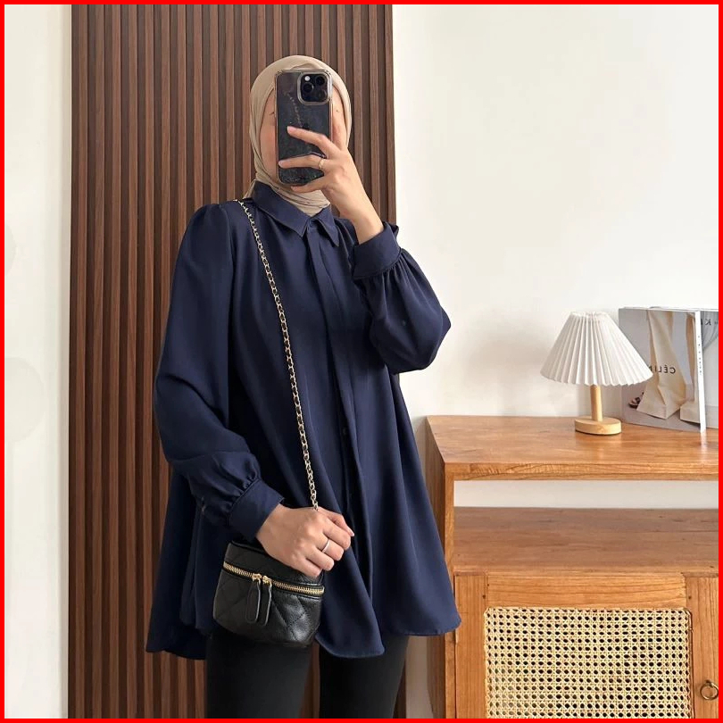 Kinka Blouse Shakilla Twill Atasan Kemeja Wanita Muslimah Polos Lengan Panjang Kekinian