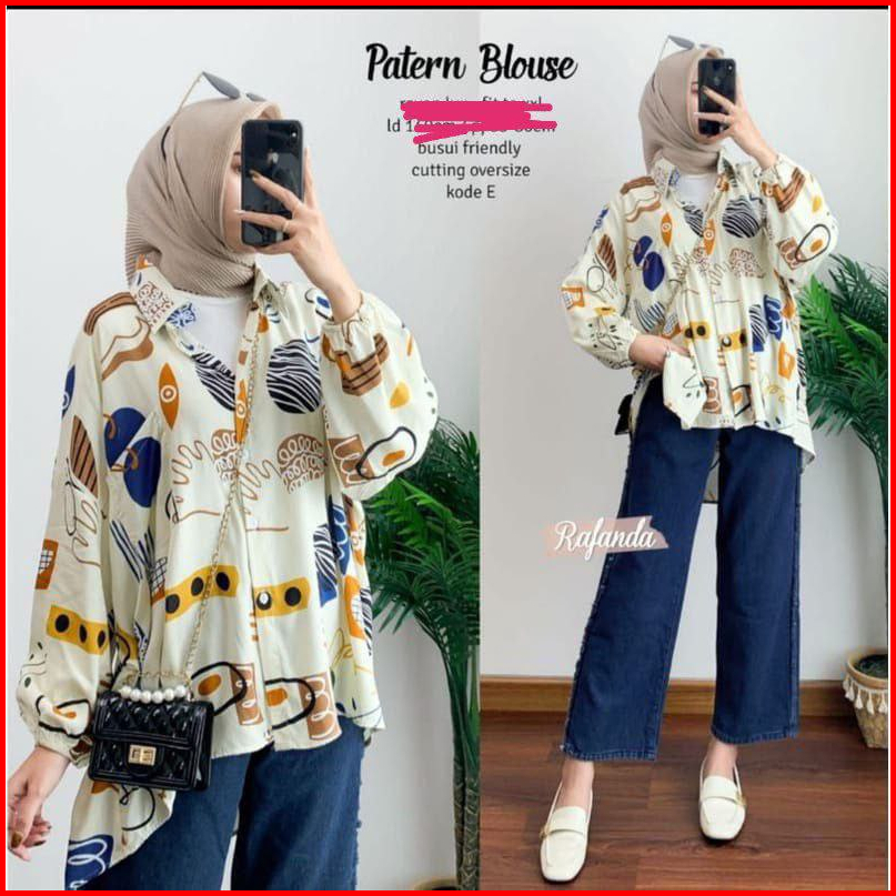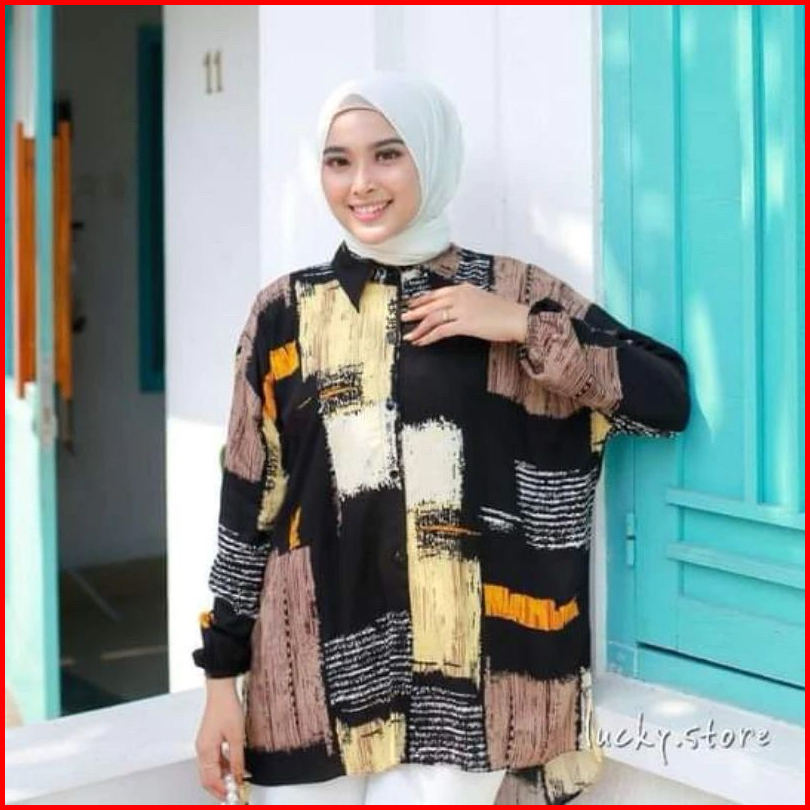 Kemeja Wanita Oversize Blouse Rayon Viscose Motif Jumbo Xxxl Ld 130cm