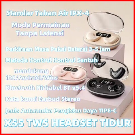 X55 Nirkabel Headset Bluetooth 5.4 Led Tombol Kontrol Tombol Headphone Tahan Air Earphone Peredam Bising Untuk Semua Pon