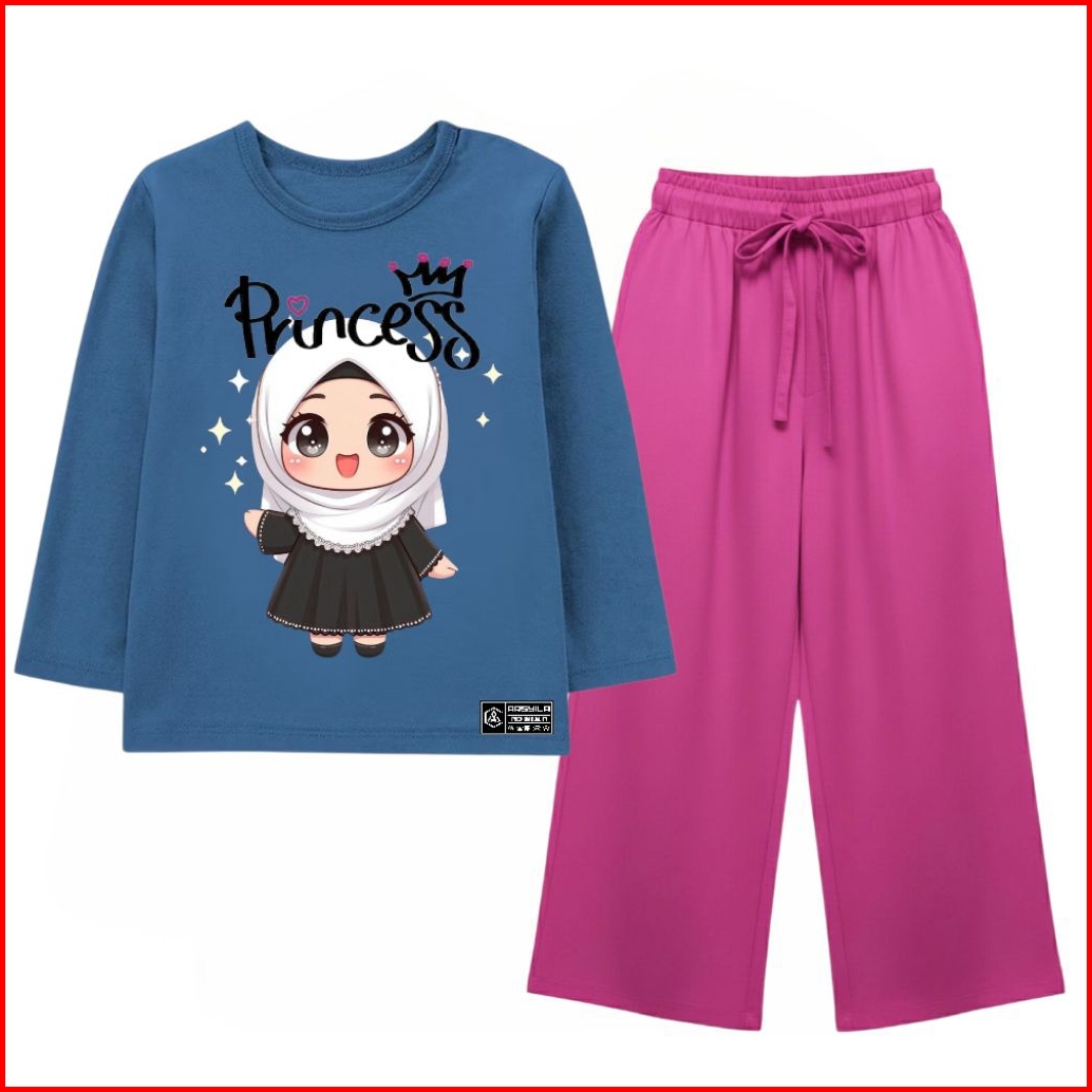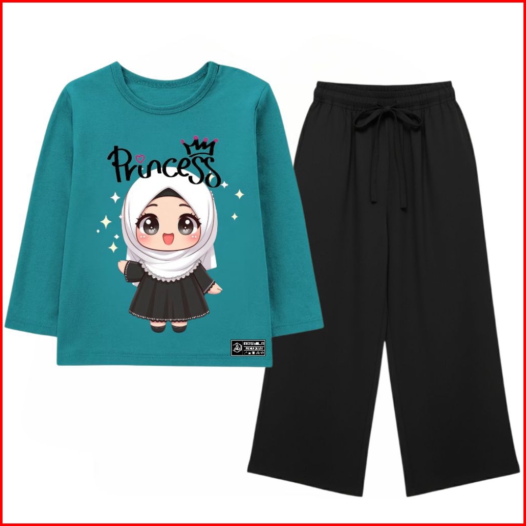 Setelan Kulot Anak Perempuan Muslimah - Baju Anak Perempuan Lengan Panjang Celana Kulot Usia 1-13 Tahun