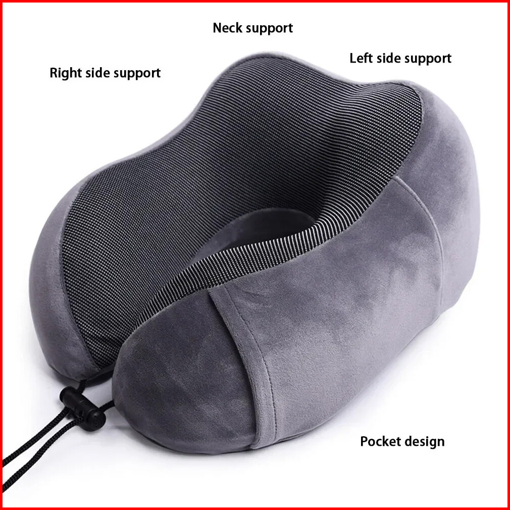 Autoshopee Bantal Leher U Shape U-shape Foldable Travel Neck Pillow Traveling Lembut Empuk Kantung Slot Smartphone Mobil