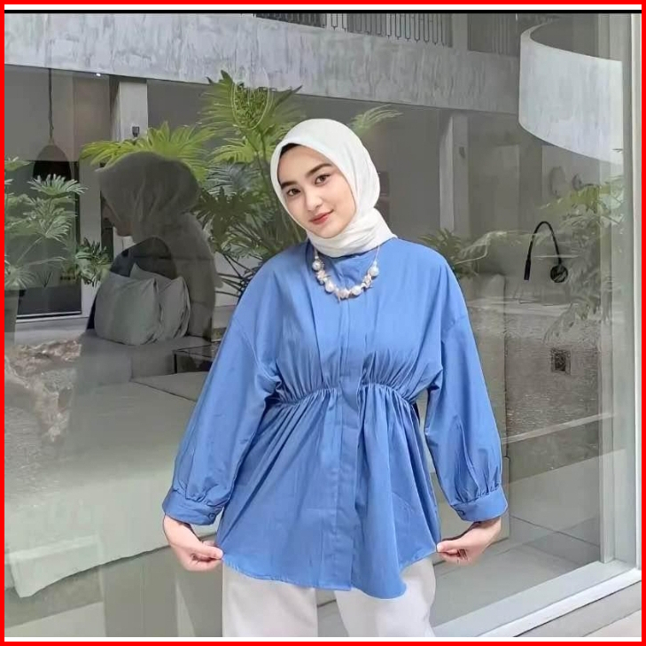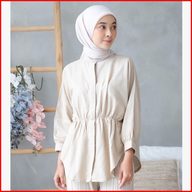 Alya Shirt Atasan Linen Wanita Kerut Depan Kemeja Blouse Wanita Katun Kerut Depan Oversize