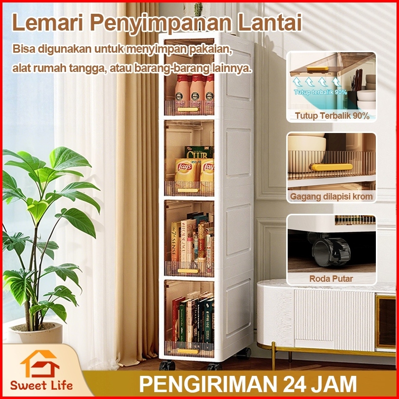 Sweet Life Kotak Plastik Susun Ditumpuk Transparan Berkapasitas Besar Loker Serbaguna Ada Roda Lemari Penyimpanan Kamar