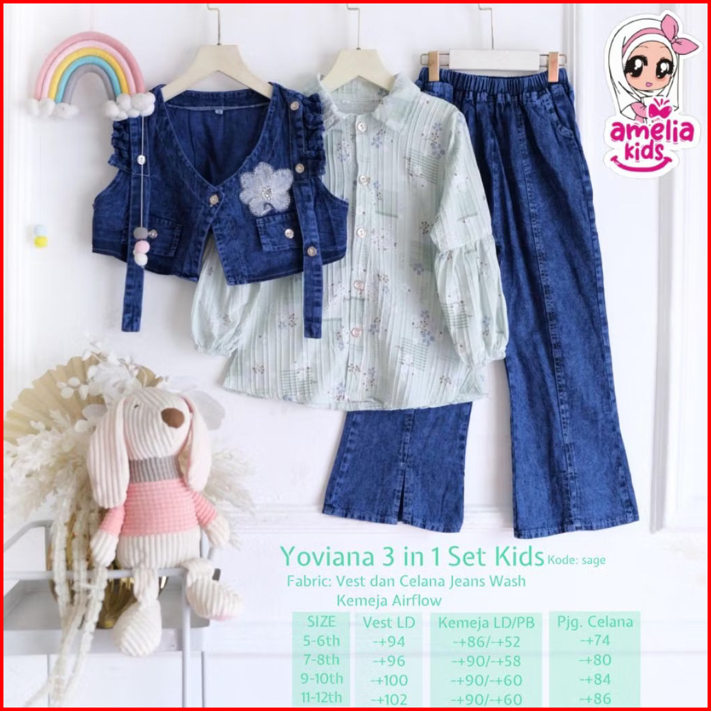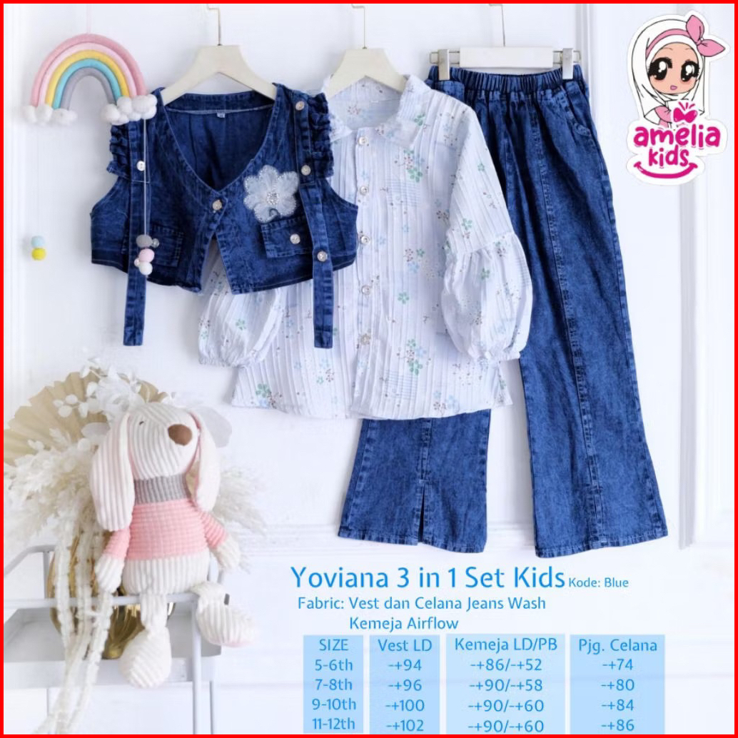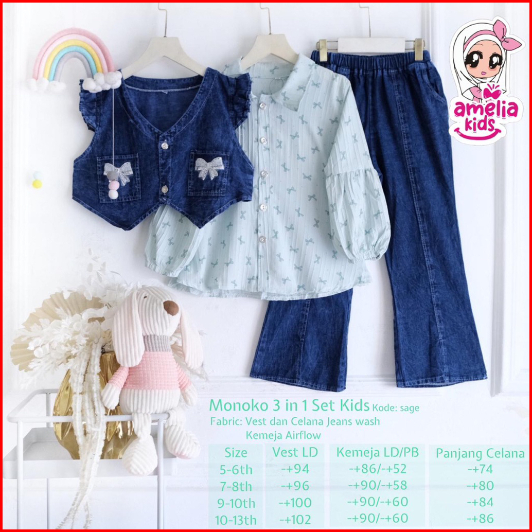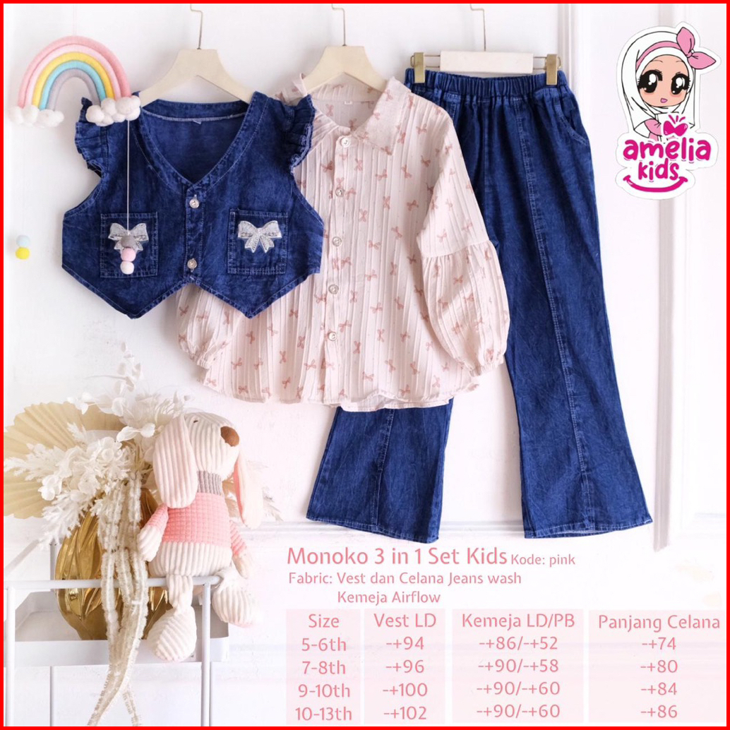 New Arrival Setelan Blus Dan Celana Cutbray Anak Monoko Set 3in1 Setelan Baju Anak Perempuan Usia 5 Sampai 13 Tahun Ones