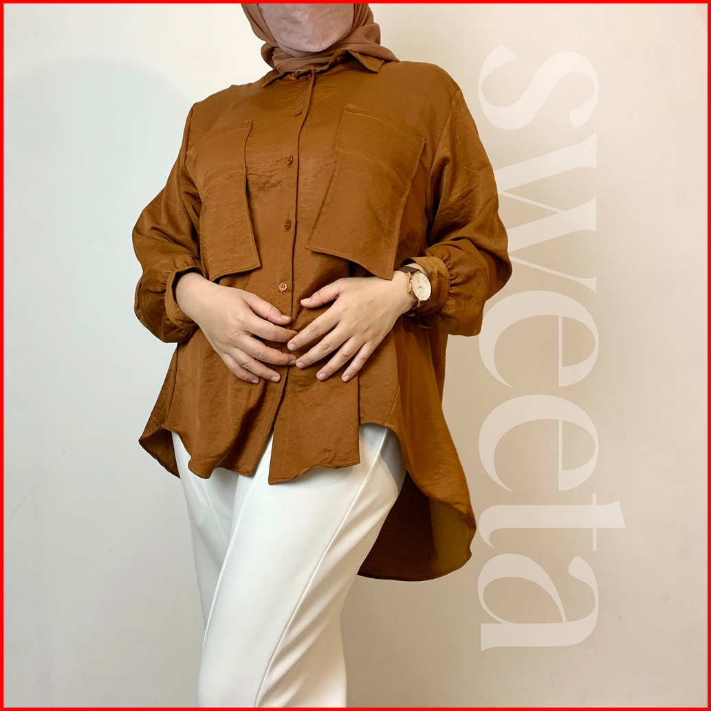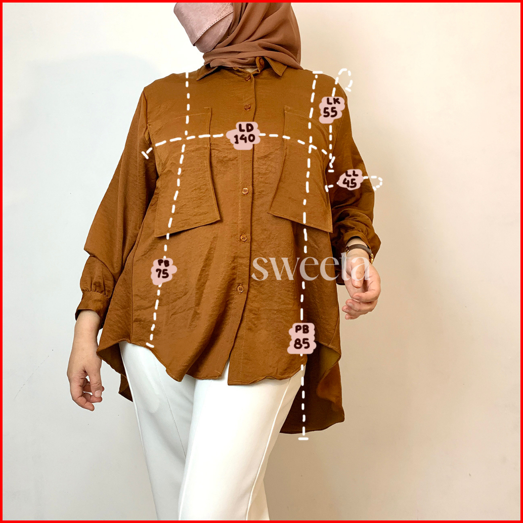Sweeta Kemeja Pocket Penguin Crinkle Jumbo Ld 140cm Oversize Muat Sampai 100 Kg Muslimah Kancing Dapat Dibuka