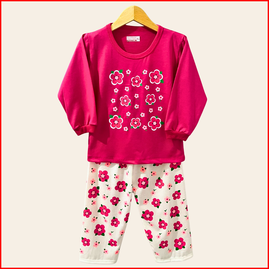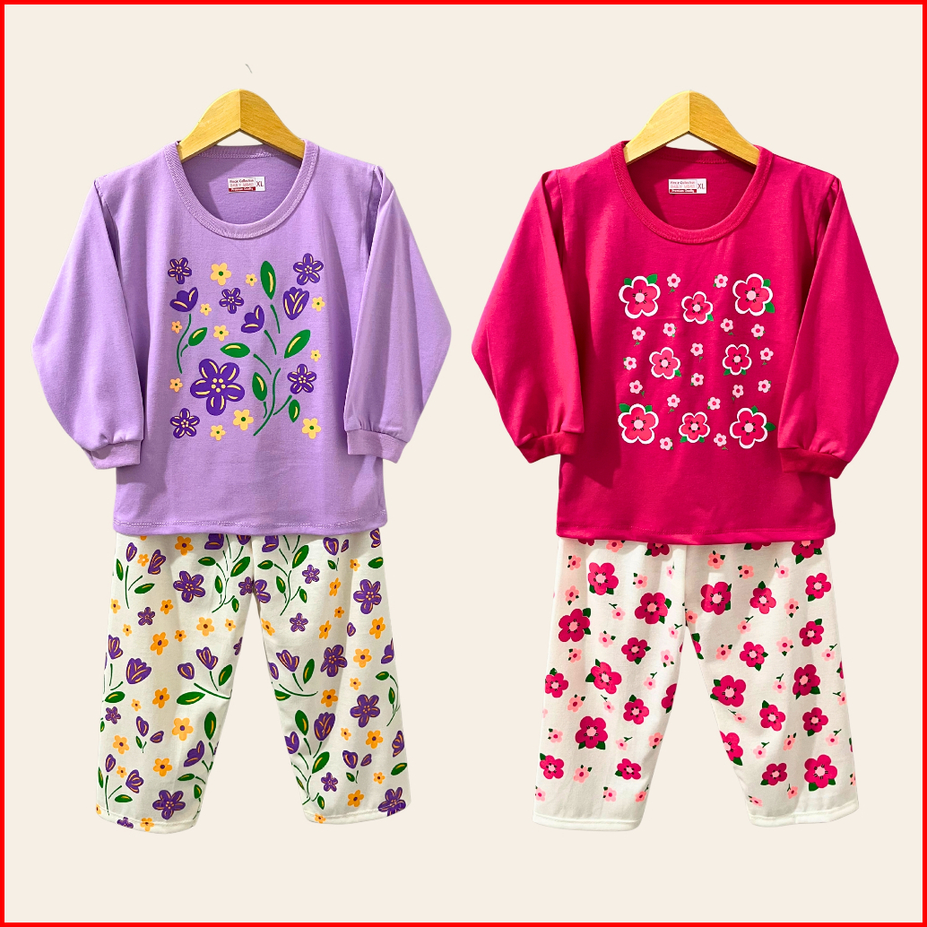 Fincie Setelan Baju Tidur Anak Perempuan Lengan Panjang Usia 1-8 Tahun Motif Bunga