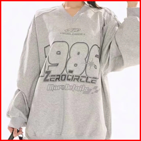Tf - Sweater Zero Circle 986 Y2k Style Sweatshirt Wanita Vneck Atasan Wanita Terbaru Korean Oversize
