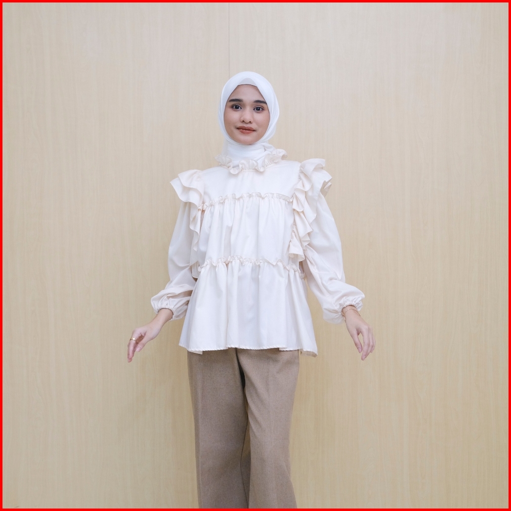 Shopataleen - Yarra Shirt Oversize Ruffle Blouse Office Outfits Wanita Viral Kekinian Korean Style
