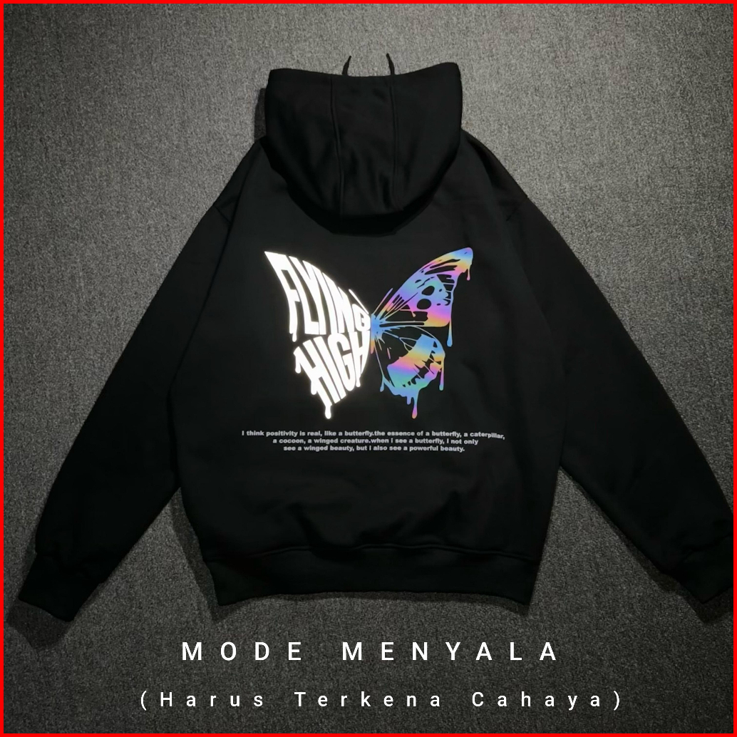 Offline Apparel Hoodie Jumper Oversize Flying High Sablon Reflektif Menyala Pelangi