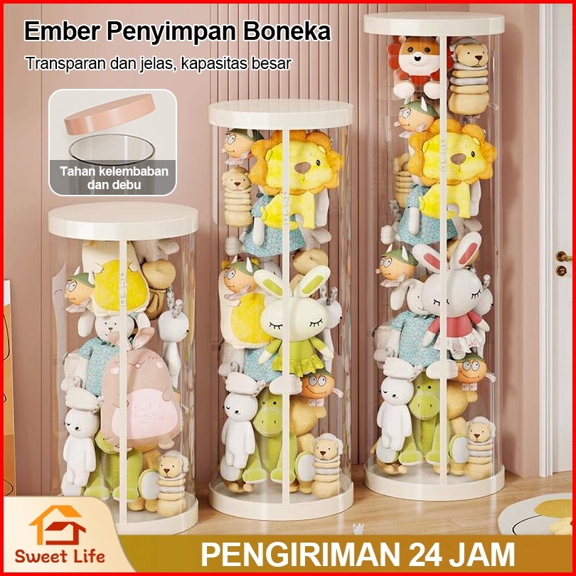 Sweet Life Doll Houses Doll Storage Bucket Transparan Tabung Storage Organizer Penyimpanan Boneka Dengan Ritsleting Kapa