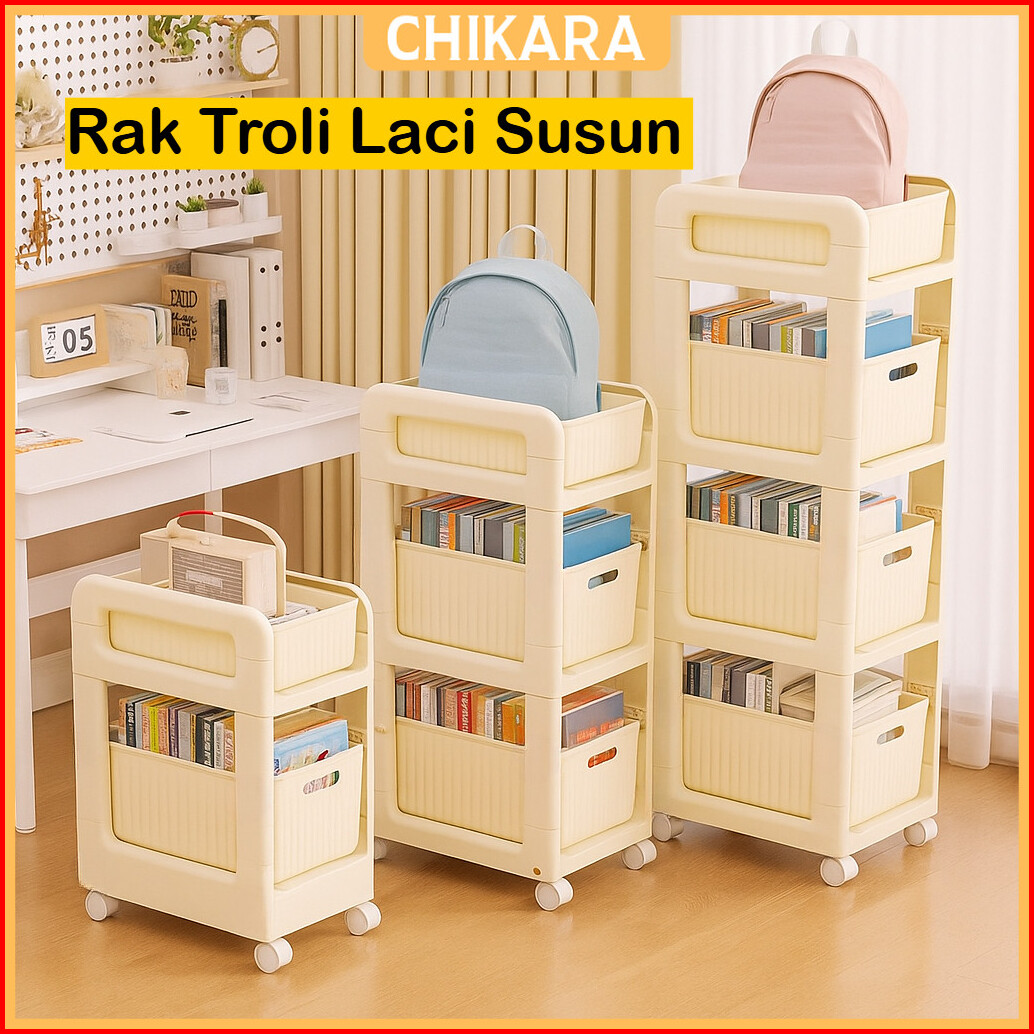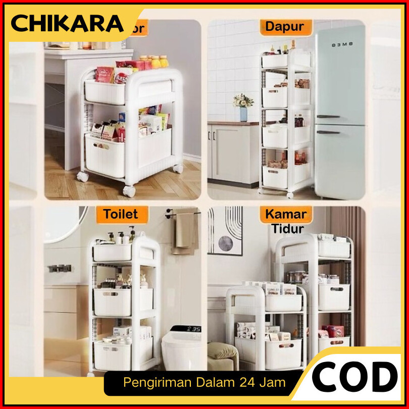 Chikara Rak Troli Laci Susun Lemari Kotak Penyimpanan Serbaguna Roda Keranjang Toilet Dapur Baju