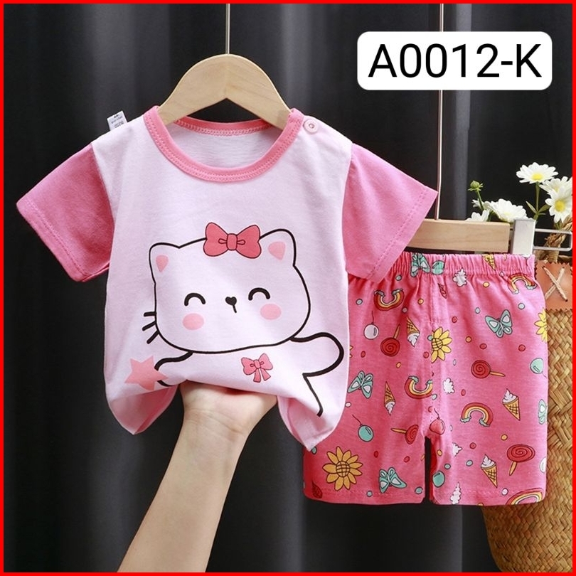 Setelan Baju Anak Perempuan Lengan Pendek Setelan Bayi Perempuan Import
