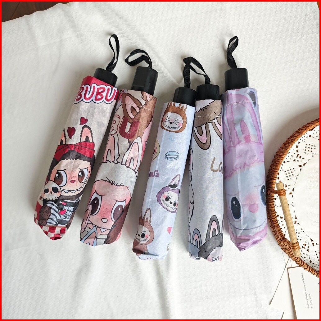 Kukee Payung Lipat Labubu Anti Uv Sinar Matahari Payung Anti Air Umbrella Lucu Panjang Payung Anak