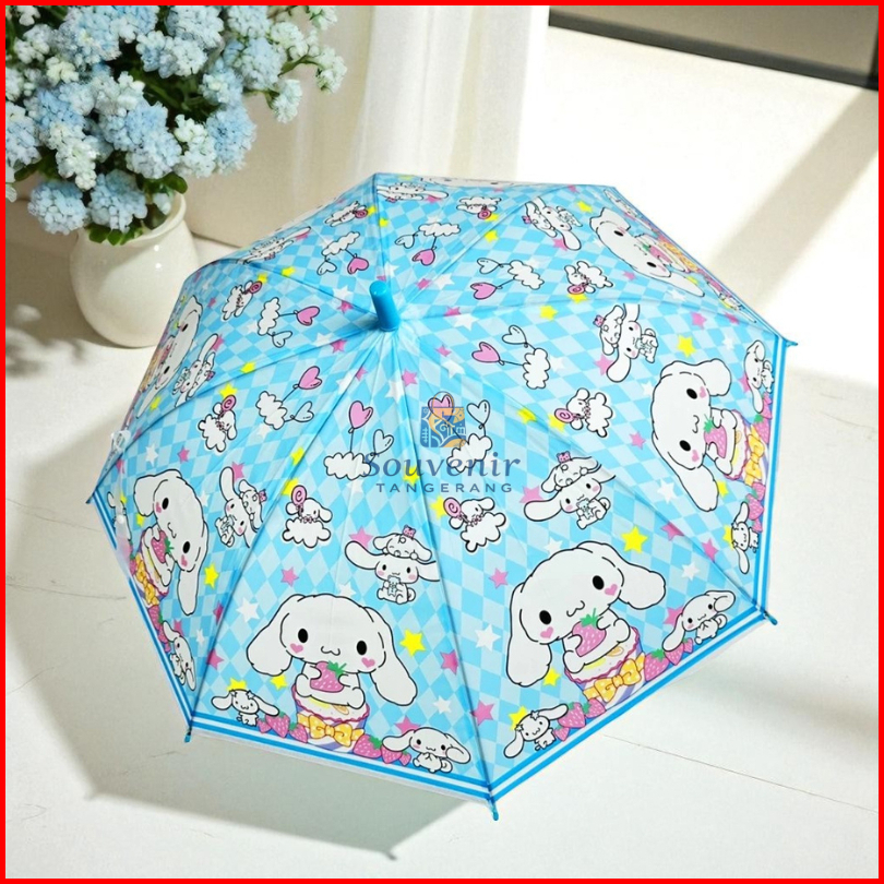 - Payung Karakter Labubu Payung Pvc Anak Karakter Kuromi Cinnamoroll Lotso Melody Full Print