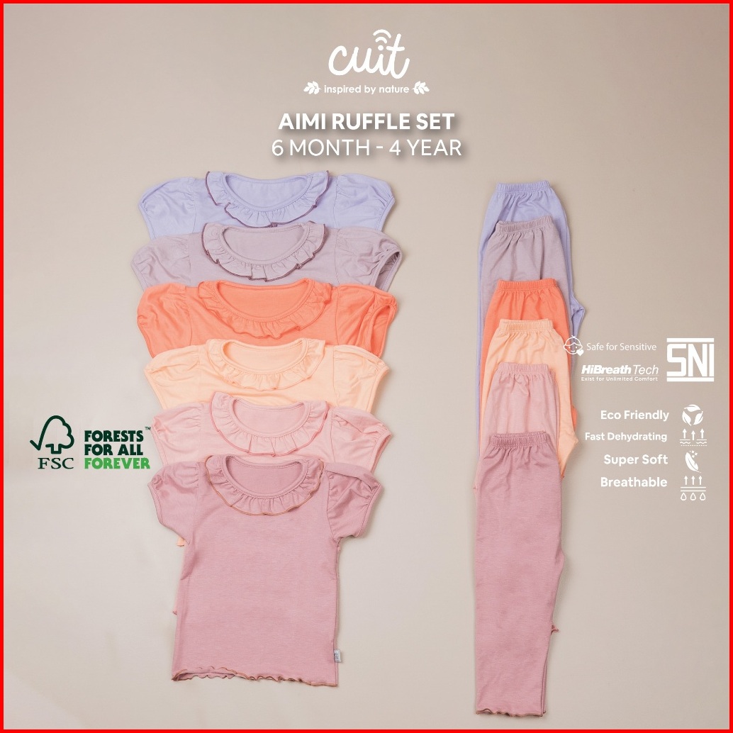 Cuit Baby 6 Bulan - 4 Tahun Aimi Setelan Pendek Panjang Ruffle Anak Perempuan New Color