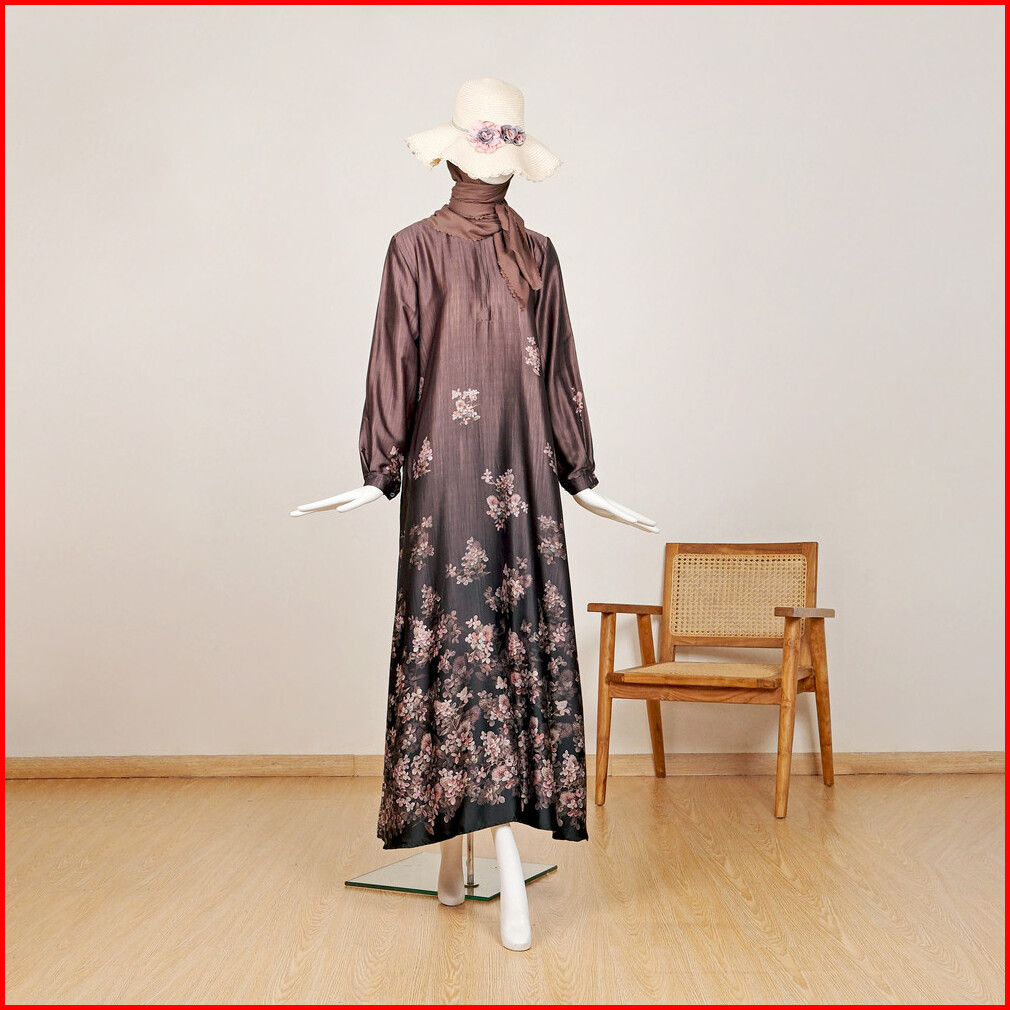 Le Khari Amanaya Dress Bahan Premium Brown Silk Gamis Busui Gamis Homedress Size S-xl