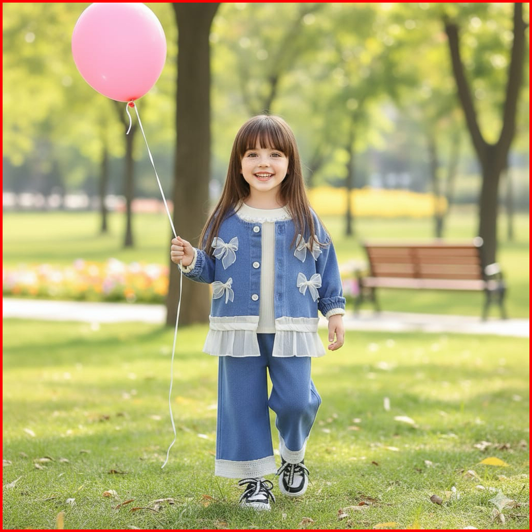 Setelan 3in1 Anak Perempuan Usia 1-5 Tahun Jaket Denim Lucu Celana Panjang Outfit Anak Korean Style Kekinian Ardan Baju