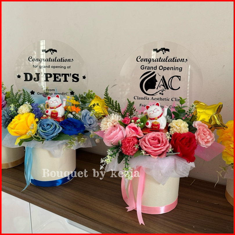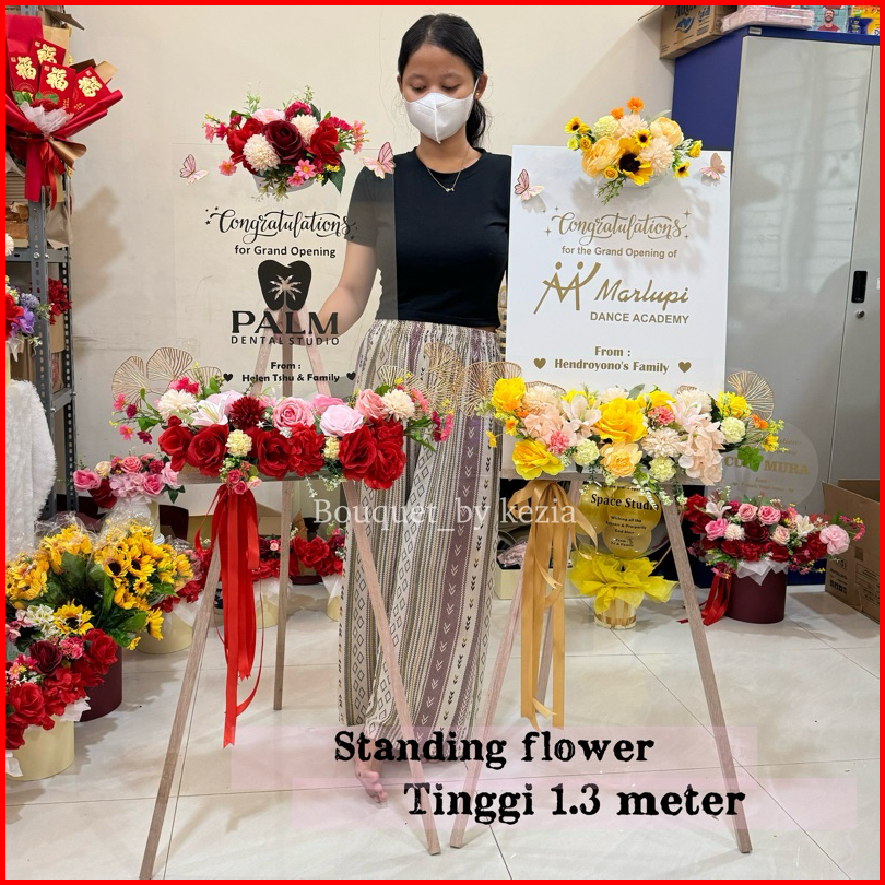 Ready Jumbo Papan Bunga Standing Flowers 130cm Bloom Box Balon Bunga Artificial Congratulation Opening Store Buket Bunga