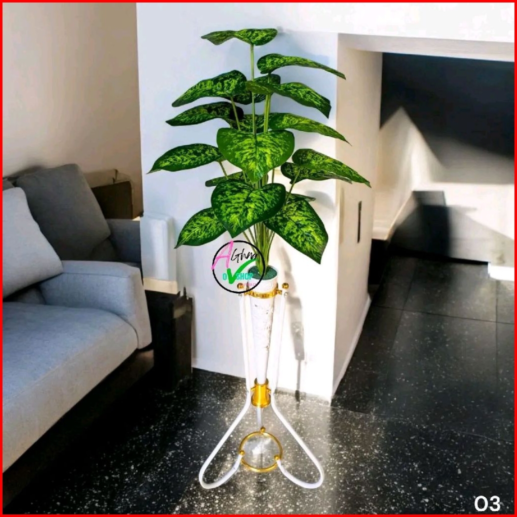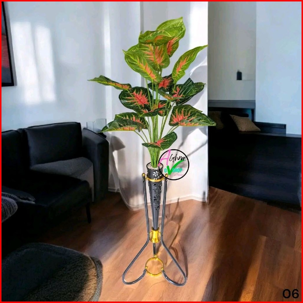 Tanaman Hias Sudut Daun Keladi K18 Lengkap Dengan Vas Standing Besi Pot Pelastik Bunga Artifisial