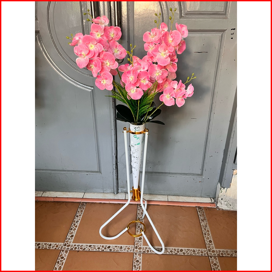 Set Bunga Anggrek Artificial Cabang 8 Berikut Vas Standing Corong Besi Bunga Sudut Ruang Tamu