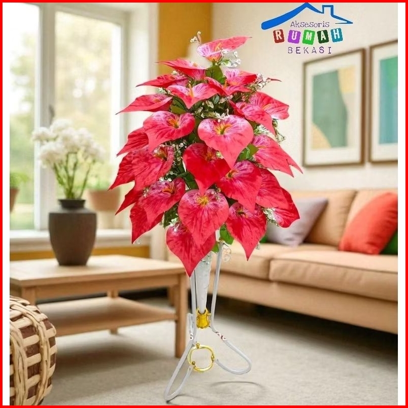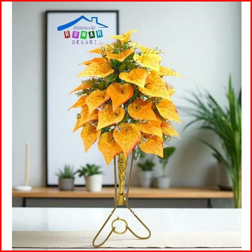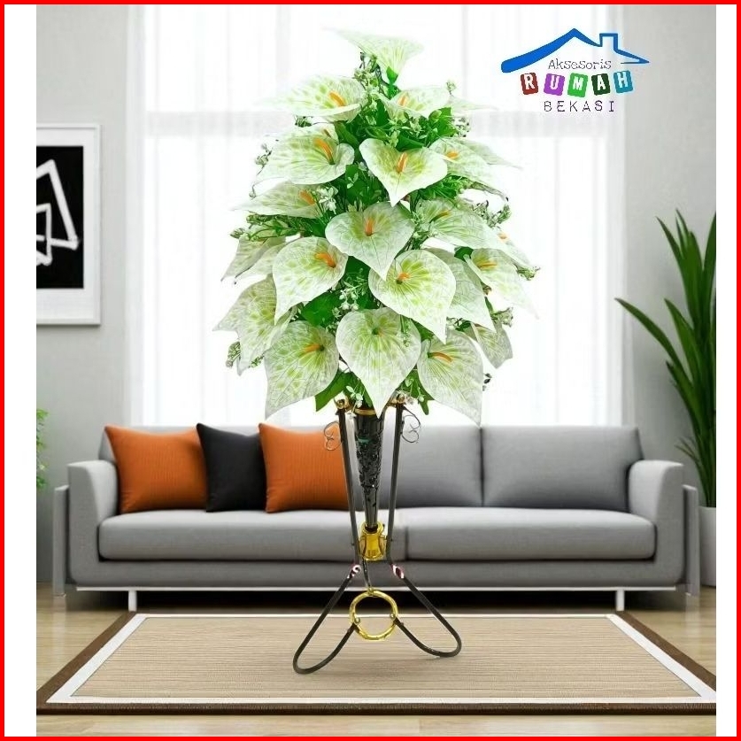Bunga Aron Panda Artificial 18 Kuntum Dengan Pot Standing Besi