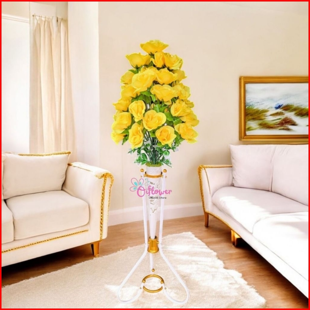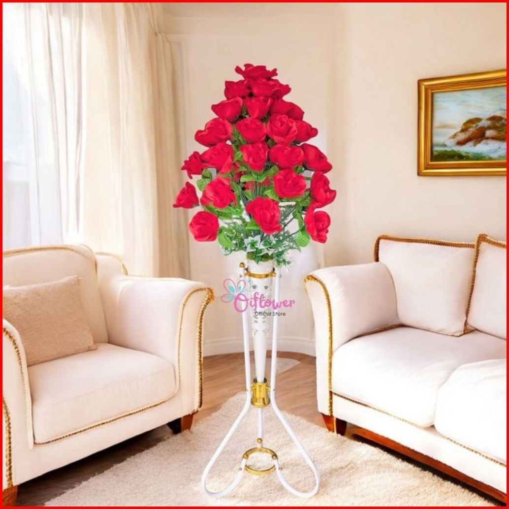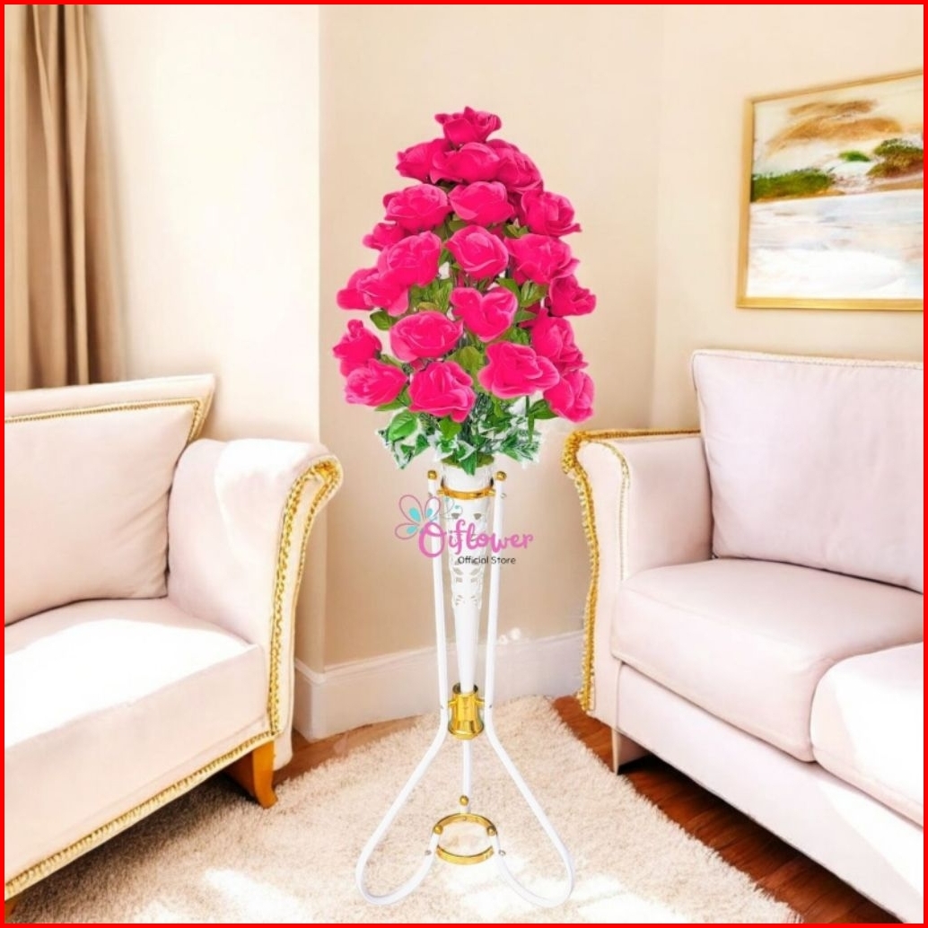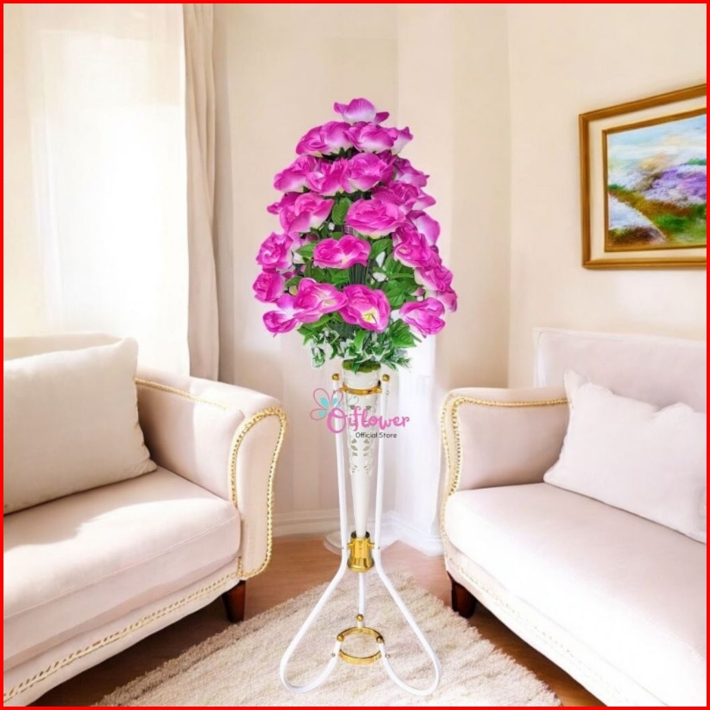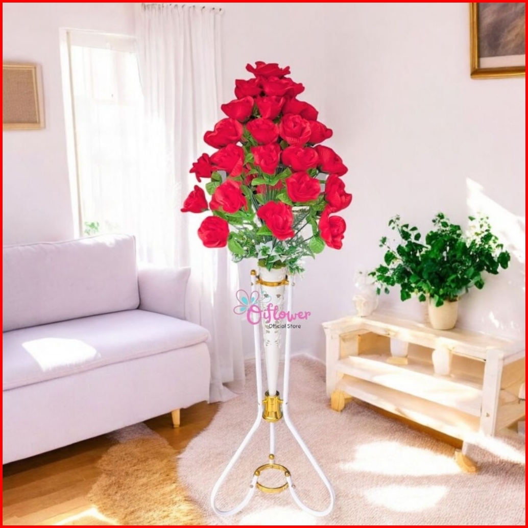 Bunga Hias Mawar Mekar 36 Kuntum Satu Set Lengkap Dengan Vas Standing Besi Hiasan Dekorasi Sudut Ruangan