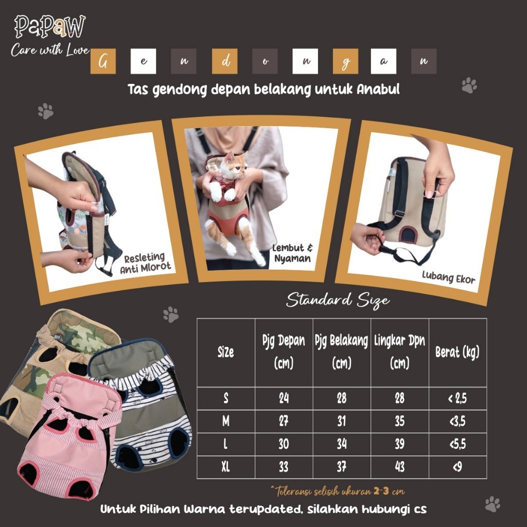 Gendongan Kucing Depan Belakang Tas Gendong Anjing Kitten Lucu Kecil Besar