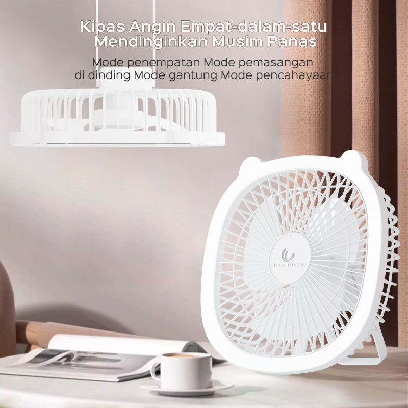 HAN RIVER Kipas Angin Portable With Lampu LED Kipas Angin Mini
