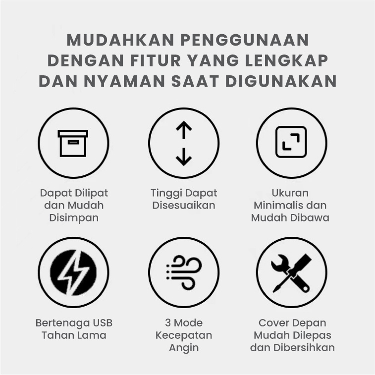 Dorahomi Kipas Angin Meja Lipat Portable Berdiri Usb Cas Baterai 2000mAh Putar Naik Dan Turun 180° Cocok untuk Kantor Perpustakaan Kamar Tidur