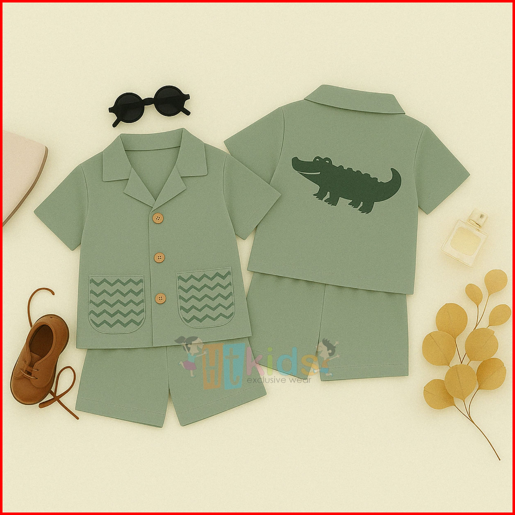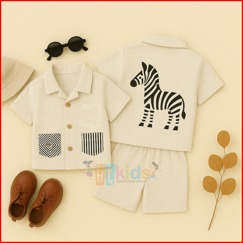 Htkids Baju Setelan Safari Anak Motif Binatang Lucu Zebra Singa Gajah Buaya St14 1 - 6 Tahun