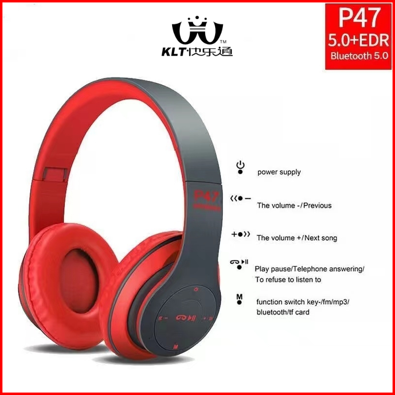 Klt Headphone Bluetooth P47 Headset Wireless Earphone Gaming Handsfree Pure Bass Stereo