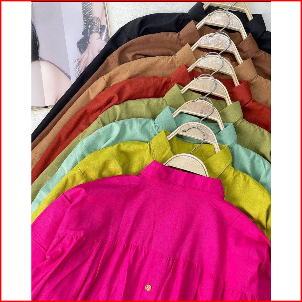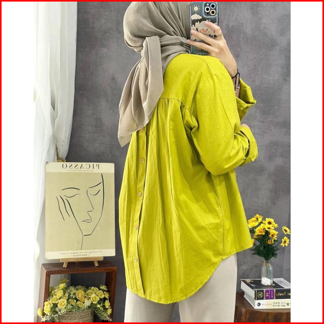 Karina Top Shirt Hana Rika Kemeja Blouse Katun Linen Wanita Oversize Variasi Kancing Belakang